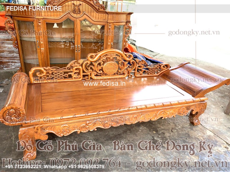 Wooden Bed Wooden Almirah With Dressing Table Gray Bedroom Furniture No-5201